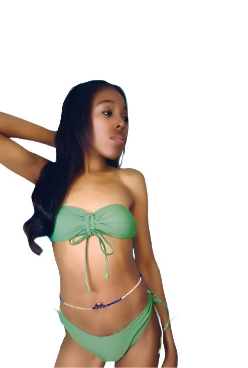 Look and feel your best in the Chloe Bandeau Set! This two-piece set features a bandeau top and scrunched bottom with adjustable side ties. The cheeky bottoms deliver a flattering fit that will keep you feeling confident and stylish while you’re enjoying a day at the beach or pool. Get your summer look on point with the Chloe “Bandeau Set”!